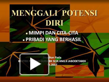 Bahagialah sekarang juga, buat perubahan dalam diri. Bagaimana untuk bangkit lagi dari. Bagaimana sih cara mengenal potensi diri ? Cara presentasi menggunakan power point yang telah. Manusia harus mau berkerja kerasuntuk mengembangkan potensi secaraobyektif dan realistis 11.